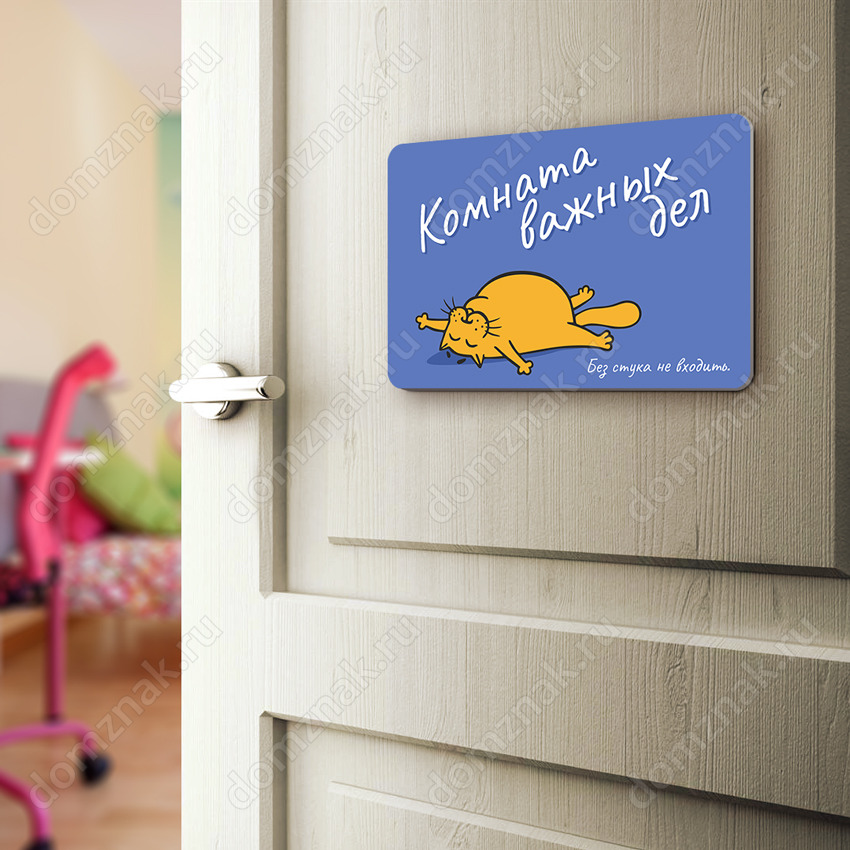 Табличка «Комната важных дел» изготовлена из пластика ПВХ, толщиной 4 мм. Изображение наносится по технологии УФ-печати. Табличка предназначена для использования как в помещении, так и на улице.