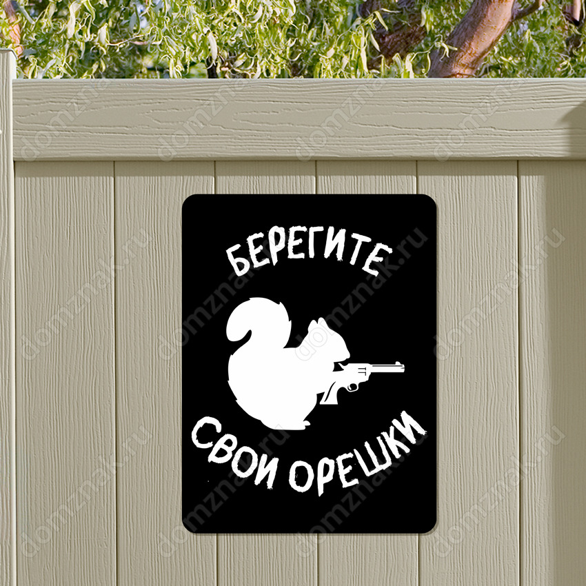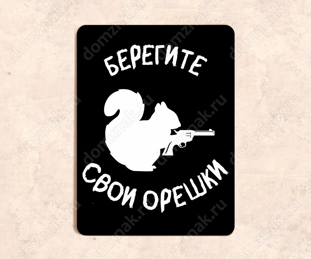 Табличка «Берегите свои орешки» изготовлена из пластика ПВХ, толщиной 4 мм. Изображение наносится по технологии УФ-печати. Табличка предназначена для использования как в помещении, так и на улице.